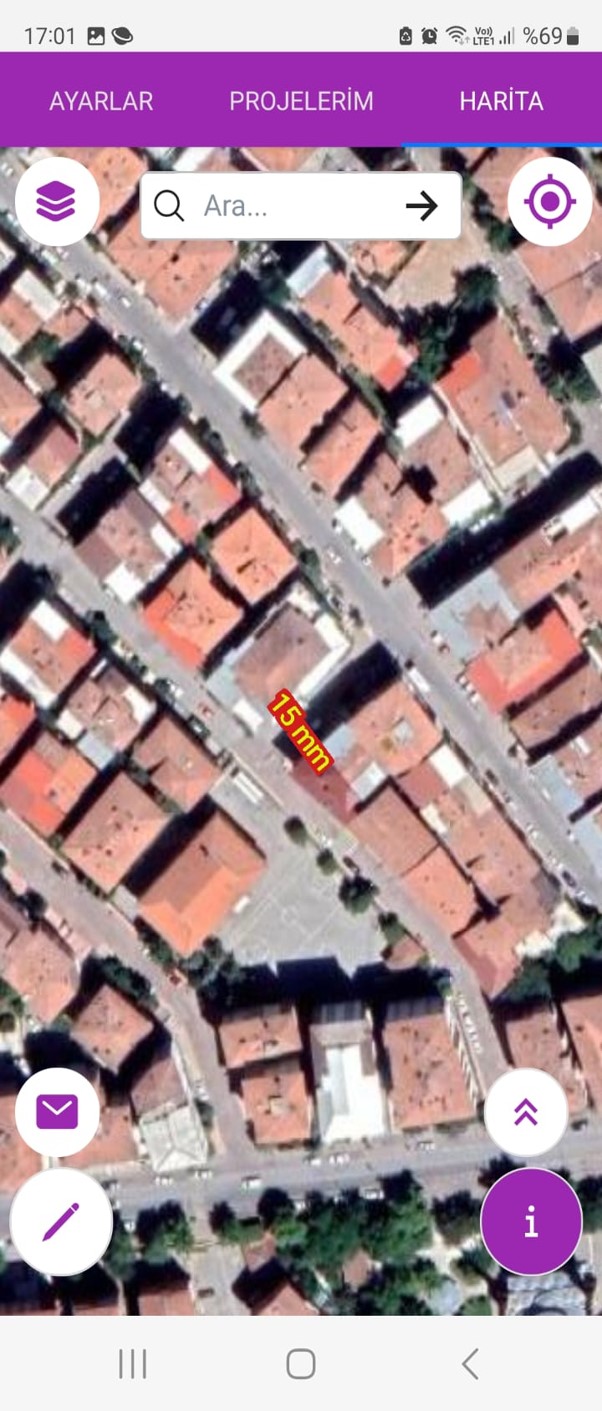Users registered to the system can process the work orders coming to their mobile devices as field measurements into point, line and polygon layers within the scope of the work and send these data back to the central database. At the same time, photographs can be taken of each object and recorded on that object.